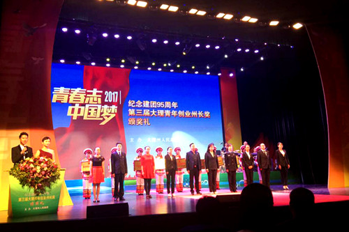5月4日晚,集團公司團委在紀念中國共青團建團95周年暨第三屆大理青年創(chuàng)業(yè)州長獎頒獎典禮上接受頒獎。