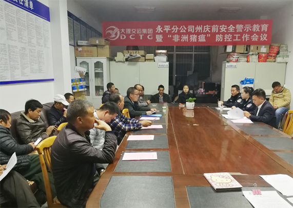此次警示教育邀請到縣公安局禁毒大隊對永平分公司駕駛員進行尿檢排查,讓毒駕遠離分公司;邀請到縣交警大隊,對節(jié)前安全警示教育進行相關要求;邀請到縣農(nóng)業(yè)局,對云南省“非洲豬瘟”疫情進行解析和通報,并對防控工作提出相關要求。